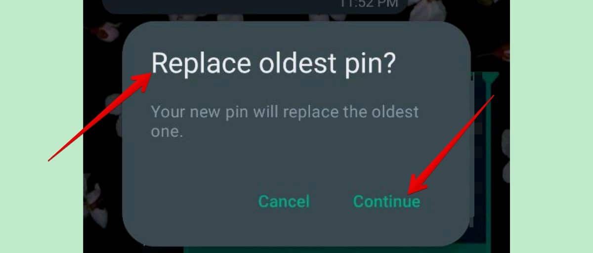 تجدر الإشارة إلى أنه إذا تخطيت عدد الرسائل الثلاثة، وأردت تثبت رسالة أخرى، سيعمل التطبيق على استبدال أقدم الرسائل المثبتة بالرسالة الجديدة التي تريد تثبيتها.