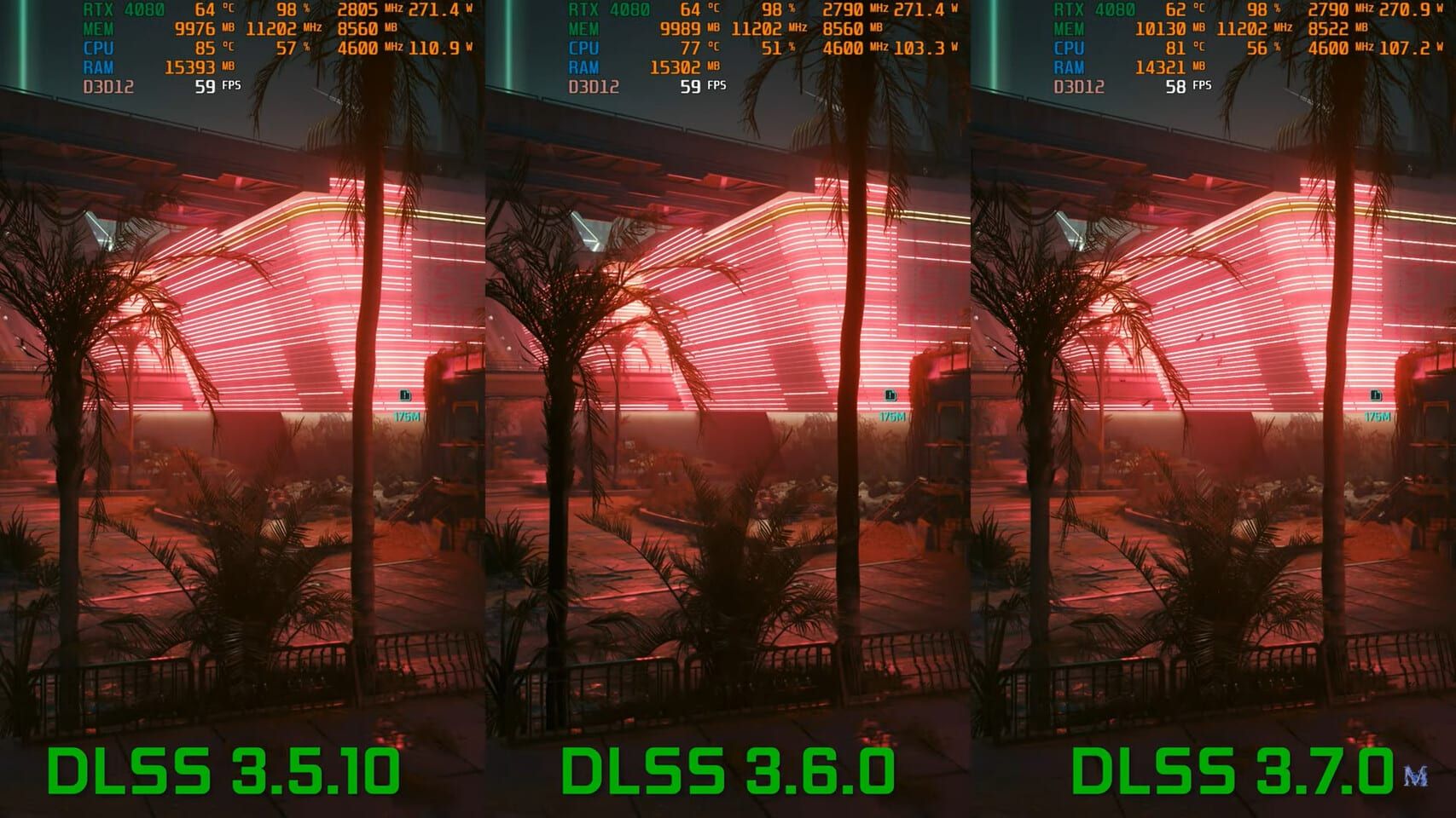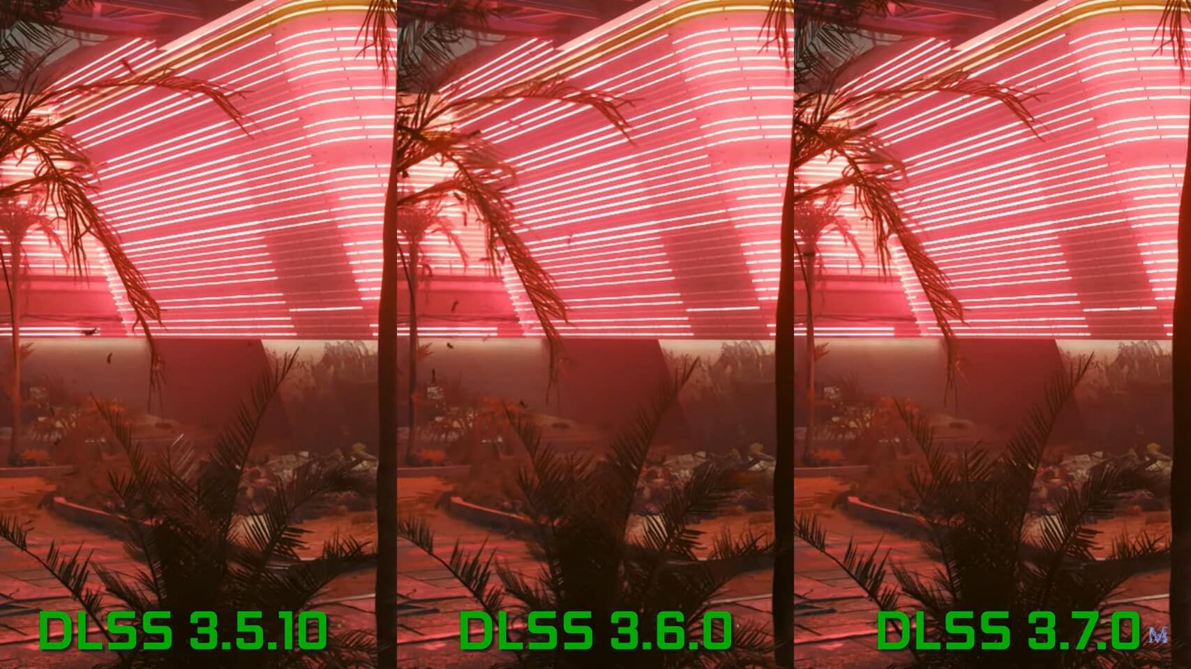 وقد جُرب هذا الإصدار الجديد في لعبة Cyberpunk 2077، إذ نشر حساب على منصة اليوتيوب هذه التجربة ليوضح المقارنة بين إصدار DLSS 3.5.10 وإصدار DLSS 3.6.0 وإصدار DLSS 3.7.0 الأحدث.