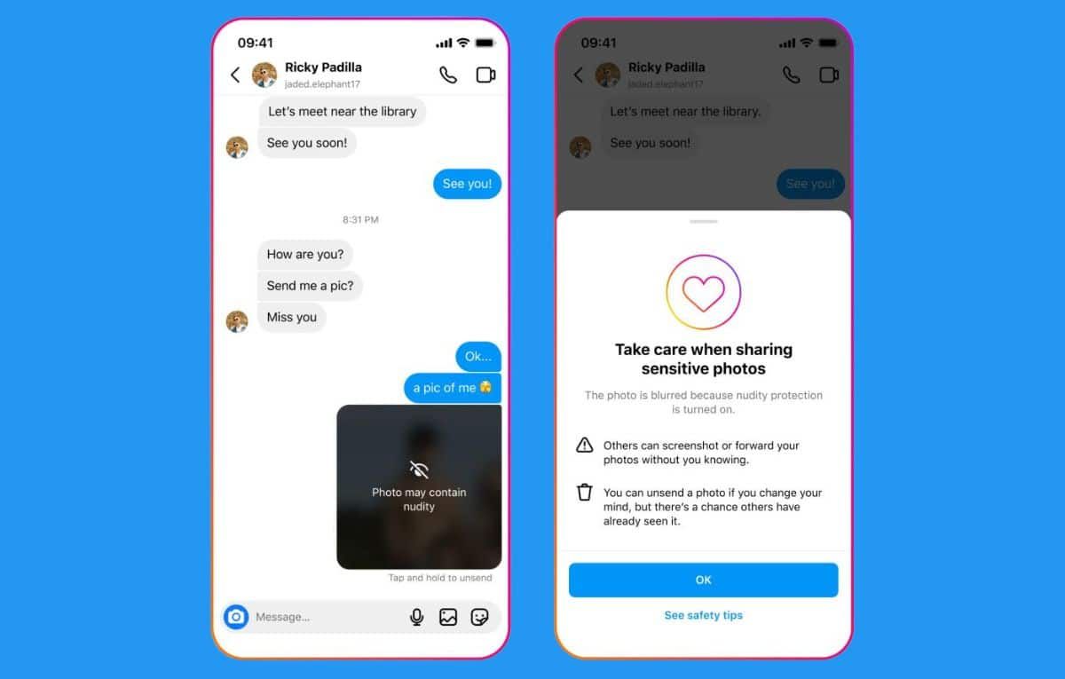 ومن المزايا الرئيسية الجديدة تعتيم صور العري والصور ذات الطابع الجنسي على نحو تلقائي في الرسائل المباشرة، حتى لا يضطر الأشخاص إلى رؤية صور غير مرغوب فيها من جهات الاتصال لديهم أو من الغرباء.