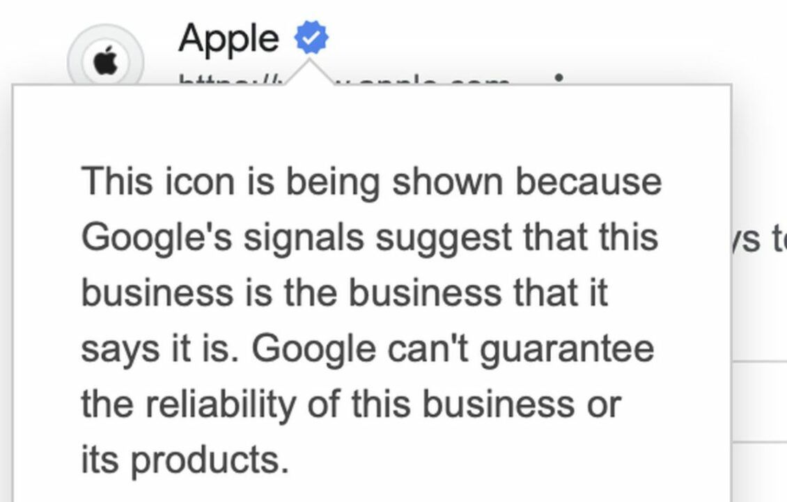 وتفيد جوجل بأن “هذه الأيقونة تُعرض لأن إشارات جوجل تشير إلى أن هذا العمل التجاري هو العمل التجاري الذي يدّعيه” ومع ذلك، أوضحت جوجل أنها لا تتحمل مسؤولية “موثوقية” العمل التجاري المذكور.