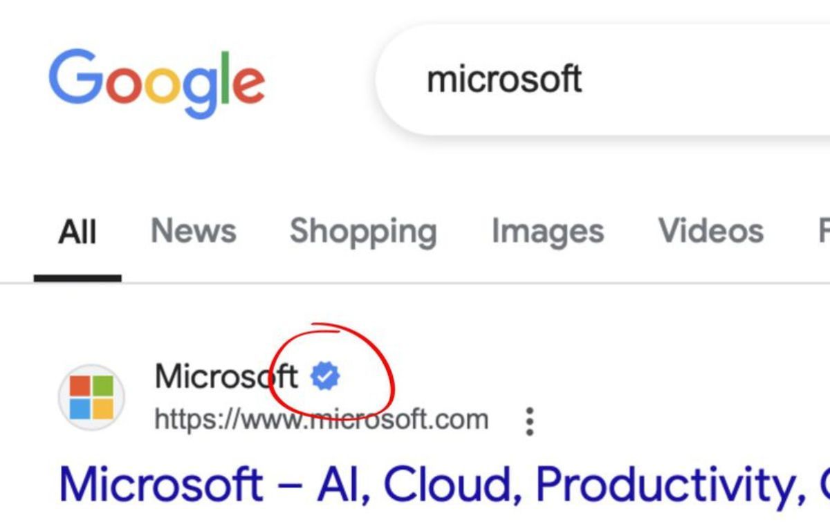 ورُصد عدد قليل من النتائج في محرك بحث جوجل مزودة بعلامة تحقق زرقاء بجوار اسم الموقع. وفقًا لتقرير نشره موقع ذا فيرج.