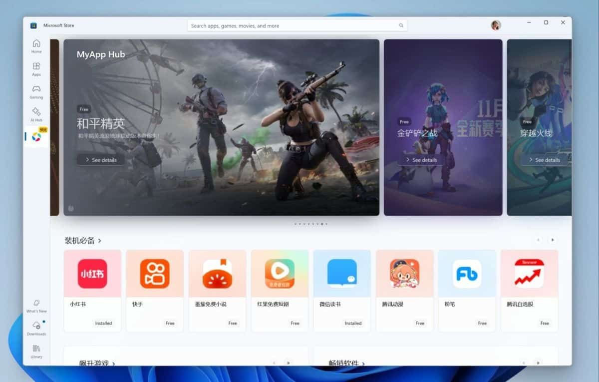 وتشمل الألعاب الشهيرة المتوفرة الآن على متجر مايكروسوفت ألعابًا مثل “PUBG Mobile” و “Honor of Kings” و “REDnote” و “Kuaishou” وغيرها من الألعاب بنحو يشبه إدماج متجر تطبيقات أمازون “Amazon Appstore” سابقًا في متجر مايكروسوفت.