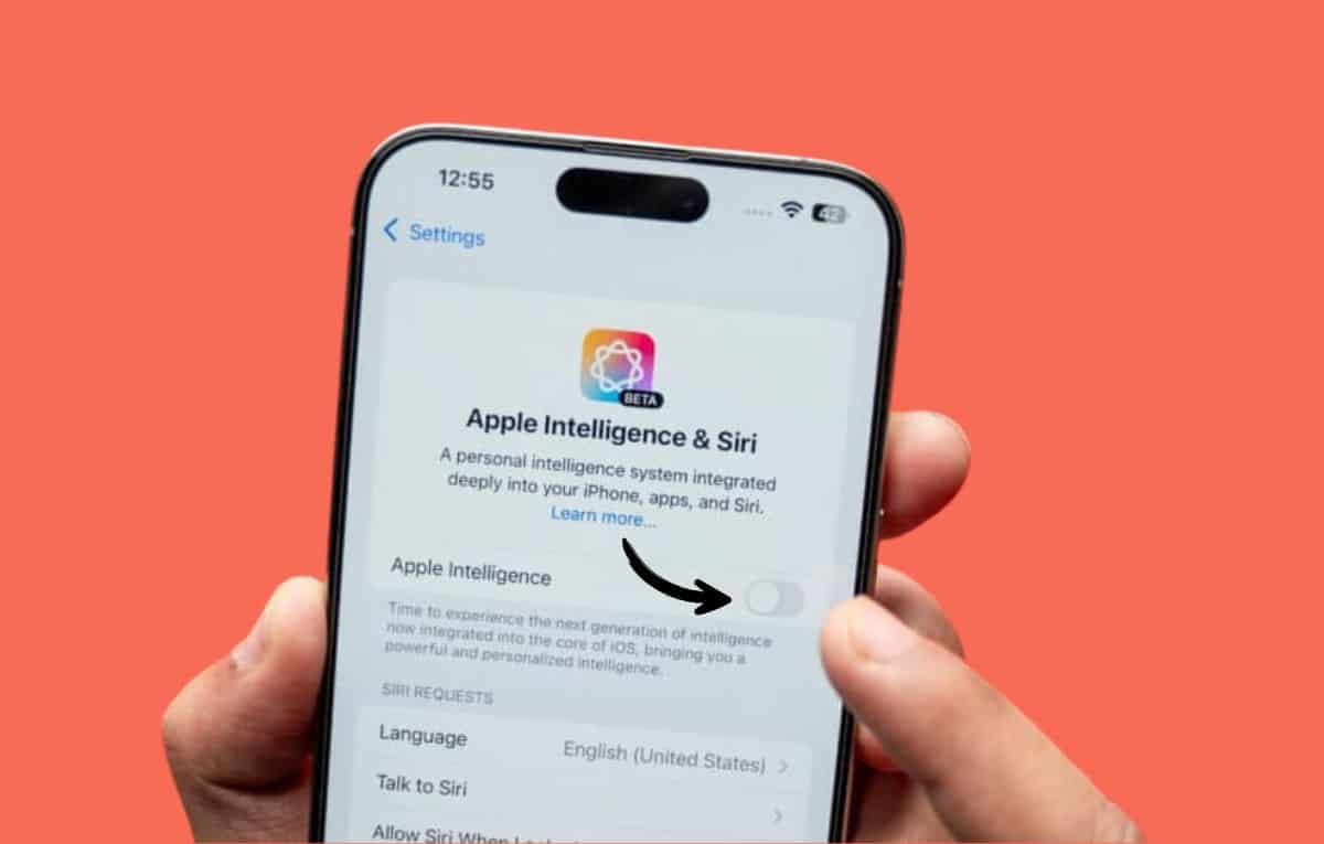 ولتعطيل مزايا Apple Intelligence، يمكن الانتقال إلى الإعدادات، ثم الضغط على “Apple Intelligence & Siri”، ثم إيقاف Apple Intelligence.