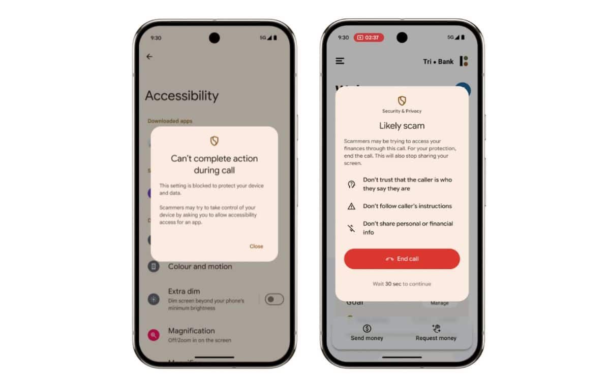 وتتضمن التحديثات الجديدة منع المستخدمين من تحميل التطبيقات أول مرة من خلال متصفح الويب أو تطبيقات الرسائل أو غيرها من الخدمات في أثناء إجراء مكالمة مع جهة اتصال مجهولة، كما سيُحظر منح أذونات “إمكانية الوصول” لأي تطبيق خلال المكالمة، وهي الأذونات التي قد تتيح للتطبيق التحكم الكامل في الجهاز وسرقة بيانات حساسة.