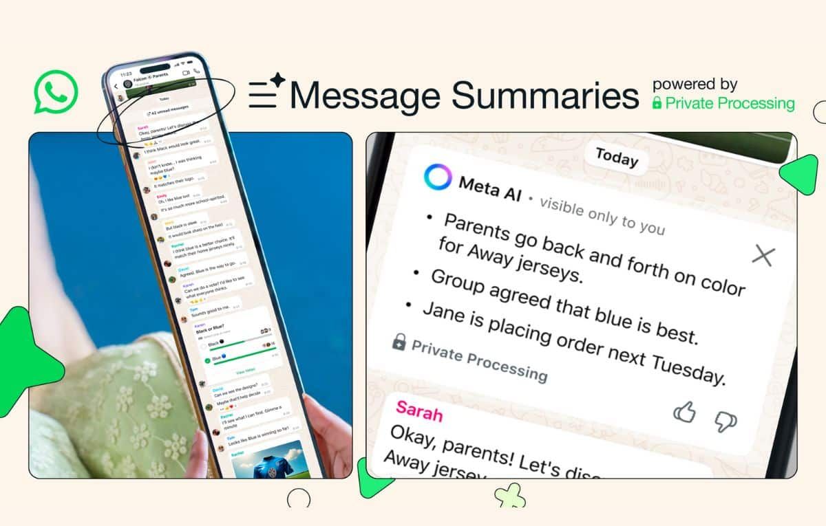 وعند توفر الميزة في واتساب، ستظهر لافتة على المحادثات غير المقروءة مكتوب عليها “تلخيص بنحو خاص”، وبالضغط عليها، يقدم مساعد الذكاء الاصطناعي من ميتا Meta AI ملخصًا سريعًا للمحتوى. وتؤكد الشركة أن هذه التقنية لا تسمح للذكاء الاصطناعي أو لخوادم ميتا بقراءة البيانات الفعلية للمستخدمين أو تخزينها.