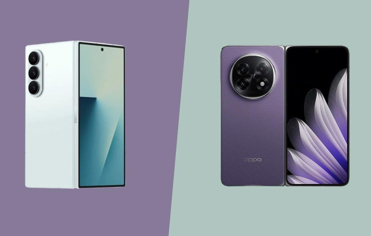يُعد هاتفا Galaxy Z Fold7 و Oppo Find N5 من أحدث وأبرز الهواتف القابلة للطي أفقيًا، وكلا الهاتفين يتمتعان بالنحافة؛ إذ يبلغ سُمك كل واحد منهما 4.2 ملم دون طي، و 8.9 ملم عند الطي، لكنهما مختلفان في العديد من الجوانب، مثل: مواصفات الشاشة، وقدرات الكاميرات، وعمر البطارية، وسرعة الشحن.