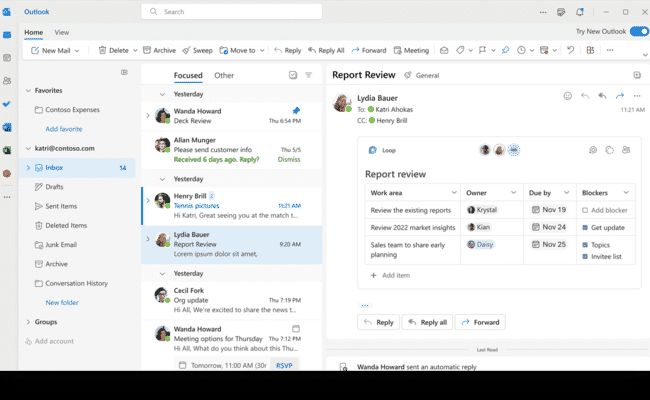 ويحصل آوتلوك على عدد كبير من الميزات الجديدة بالإضافة إلى تصميم محدث. ويأتي الإصدار الجديد مع دعم لمكونات Microsoft Loop (المعروفة سابقًا باسم Fluid framework).