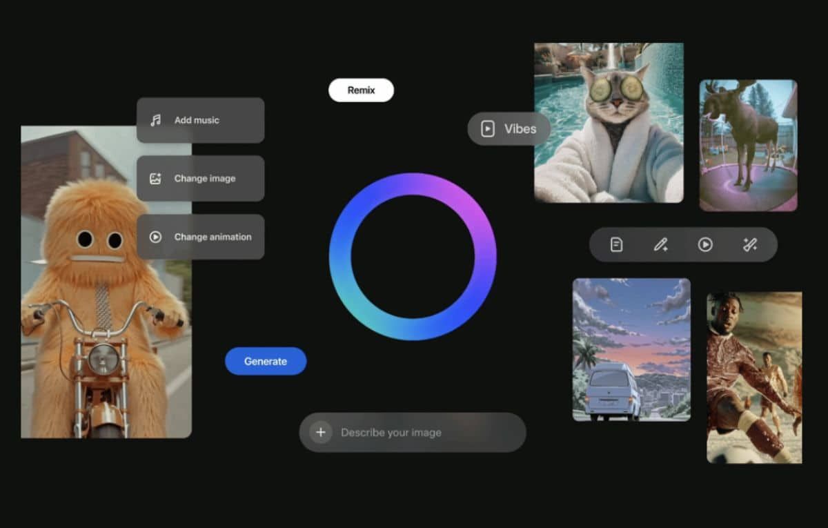 وتظهر المقاطع في هذا القسم إلى جانب النصوص التي استُخدمت لتوليدها، ويستطيع المستخدمون إعادة مزج هذه المقاطع عبر إضافة موسيقى أو تعديل الصور أو الرسوم المتحركة، ثم مشاركتها على “Vibes” أو نشرها عبر فيسبوك وإنستاجرام كقصص أو Reels.