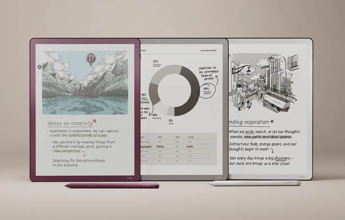 أعلنت شركة أمازون إطلاق جيل جديد من أجهزة القراءة الإلكترونية Kindle Scribe منها إصدار مميز باسم Kindle Scribe Colorsoft، ويأتي مزودًا بشاشة ملونة أكبر بتقنية الحبر الإلكتروني E Ink المطورة، في خطوة تعزز موقعها في سوق أجهزة القراءة الذكية.