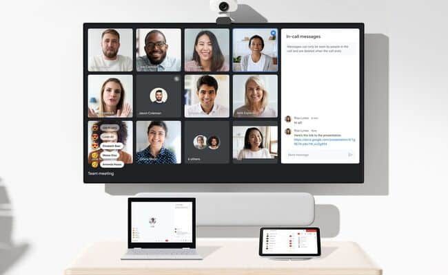 ولكن الأمر مختلف عبر الويب، إذ إن Meet هي منصة الويب الأكثر تطورًا. وتشكل أساس النظام المدمج الجديد.