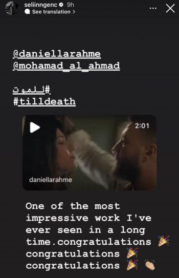 ونشرت سيلين غانش مقطع فيديو لمشهد المواجهة الذي جمع بين “ريم” و”هادي” وهما الممثلة اللبنانية دانييلا رحمة والممثل السوري محمد الأحمد، وعلّقت، “من أجمل المسلسلات التي شاهدتها منذ وقت طويل، مبروك مبروك مبروك”.