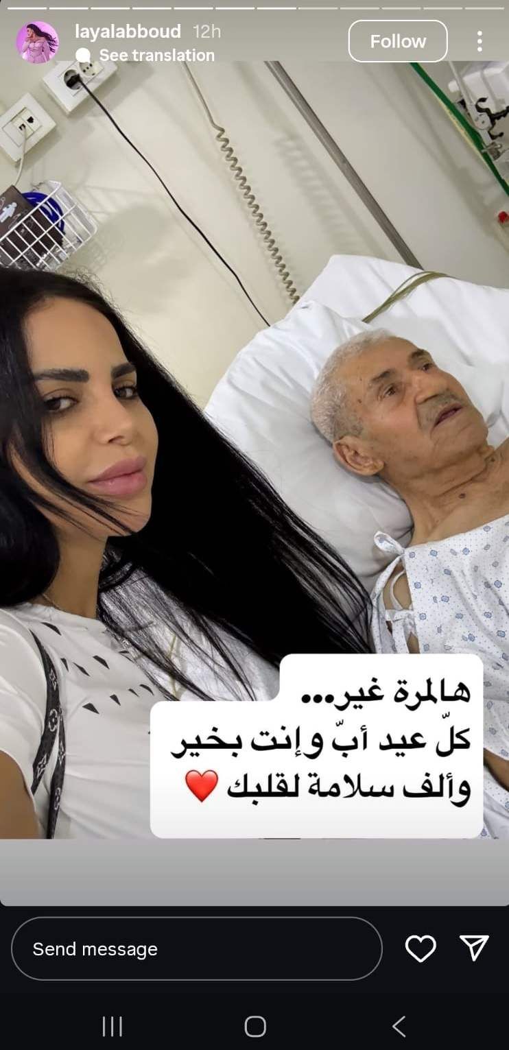 ونشرت عبود صوراً وهي برفقة والدها الذي كان في المستشفى، وقالت "الحمدلله على السلامة بابا".