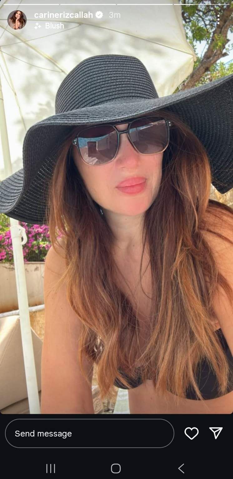 وأطلت كارين بالمايوه، وهي تضع نظارات شمسيّة، بينما لم تُعلّق على الصورة التي نشرتها.