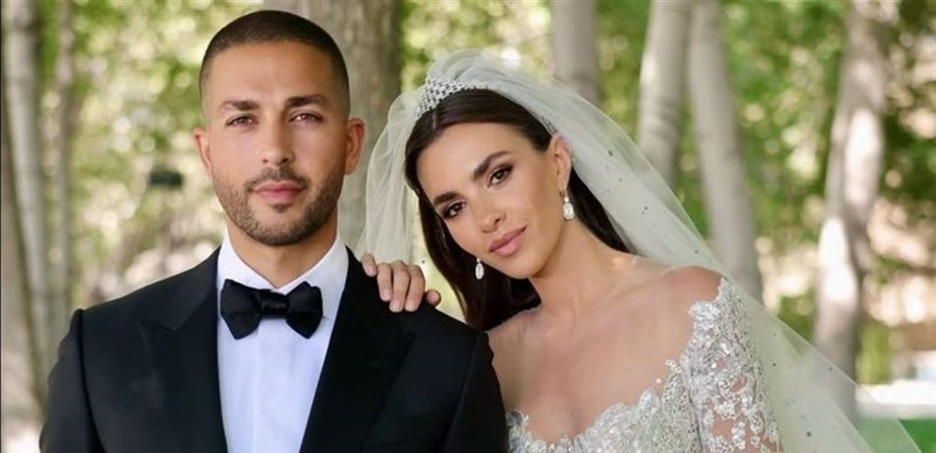 وتألقت العروس بإطلالتين الأولى في المراسم الدينية حيث أطلت بفستان فخم استغرق 400 ساعة من العمل اليدوي، بإشراف مباشر من الصمم إيلي صعب وبمشاركة 39 حرفياً ماهراً من مشغل الدار، الذين اعتنوا بأدق التفاصيل، من الكورسيه إلى زخارف الخيوط والأحجار البراقة.