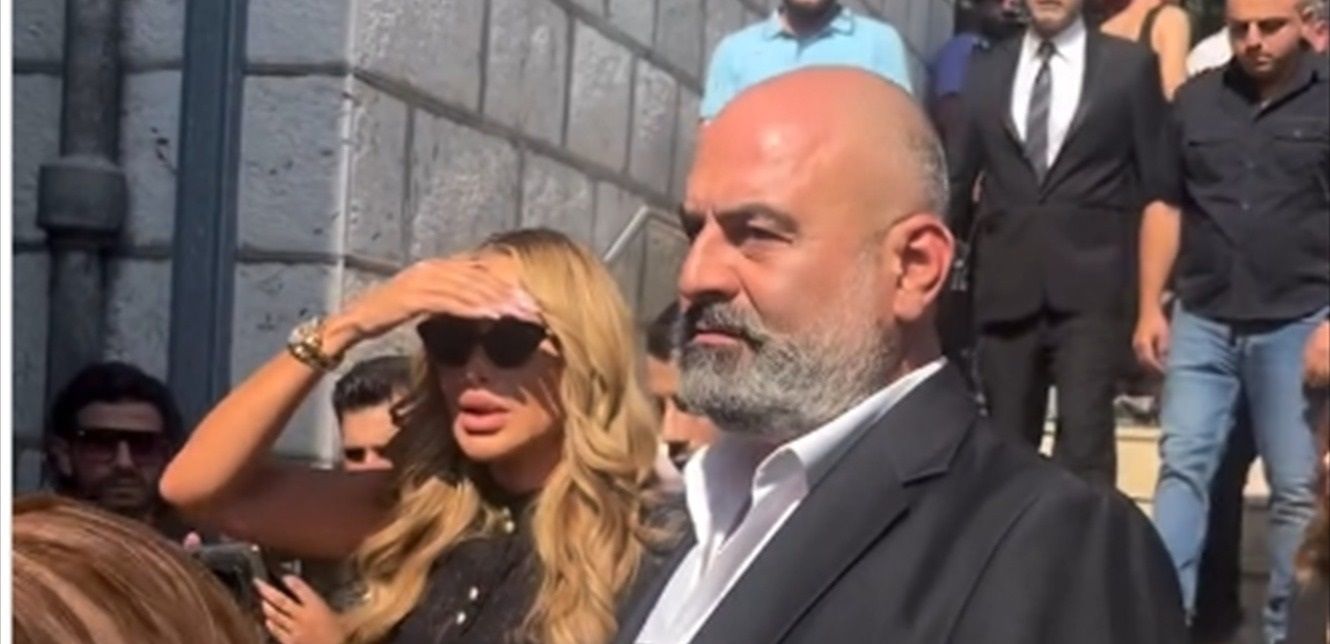 حضرت الفنانة مايا دياب مراسم جنازة ووداع الفنان الراحل زياد الرحباني، بعد وصولها إلى كنيسة رقاد السيدة العذراء للروم الأرثوذكس في بكفيا.