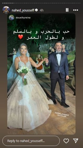 ونشر العديد من الإعلاميين وأفراد عائلة العروسين، صوراً لناهد وعلي من حفل الزفاف، وأعادت العروس نشر هذه اللقطات عبر خاصية "ستوري" عبر حسابها على "انستغرام".