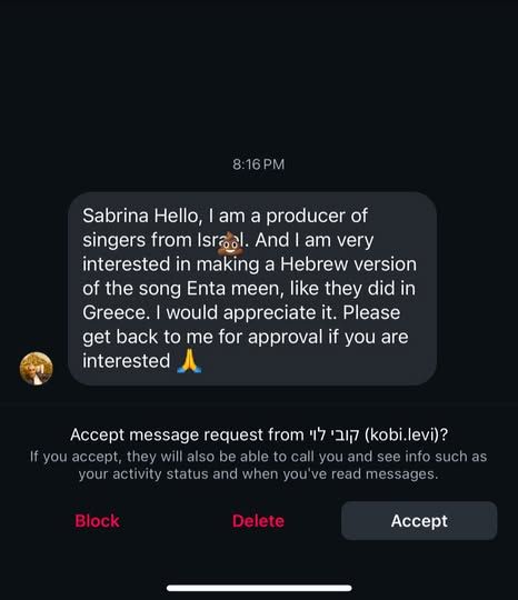 رفضت الفنانة صابرين النجيلي عرضًا إسرائيليًا، حيث أعلنت عن ذلك من خلال منشورًا عبر حسابها الرسمي على موقع التواصل الإجتماعي فيسبوك، فنشرت رسالة توضح ذلك العرض.