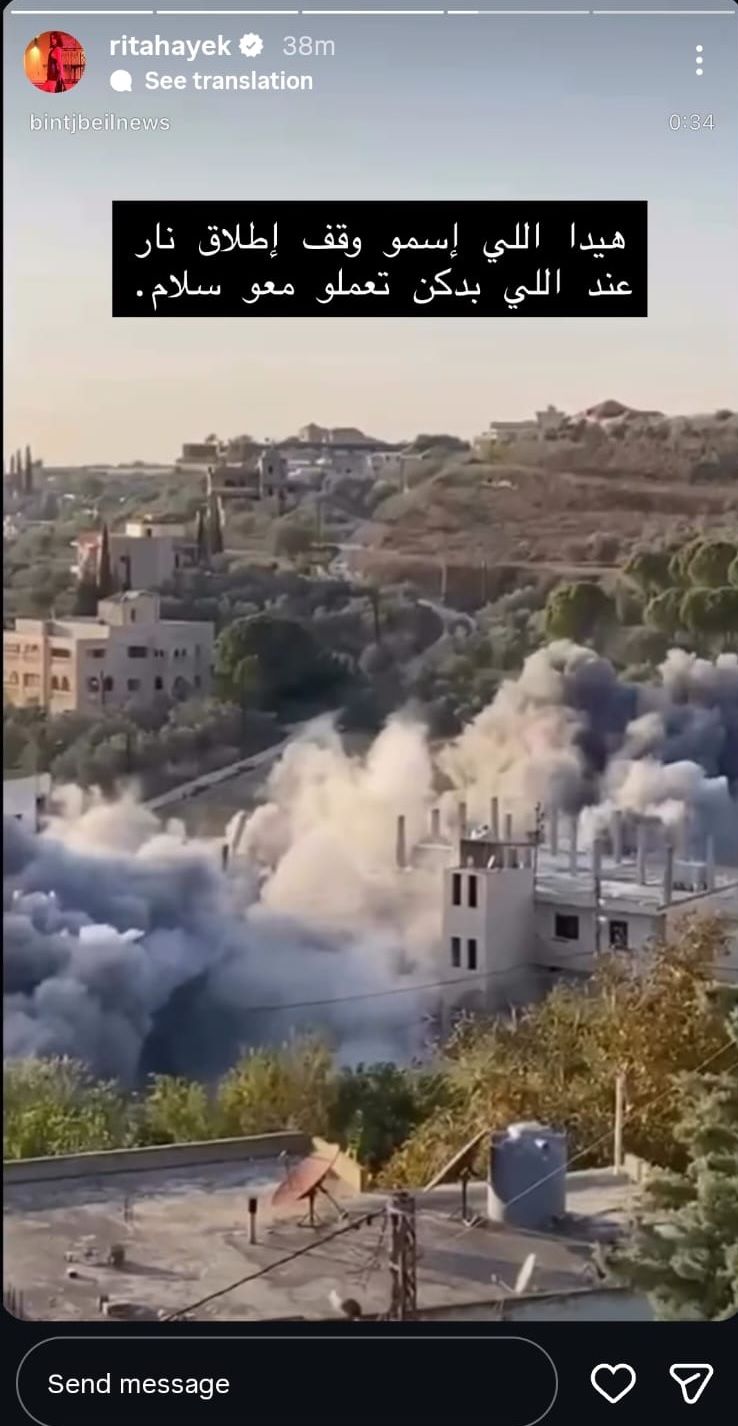 ونشرت حايك فيديو عبر خاصية "ستوري" عبر حسابها على "انستغرام"، للغارات الإسرائيليّة، أرفقته بالتعليق التالي: