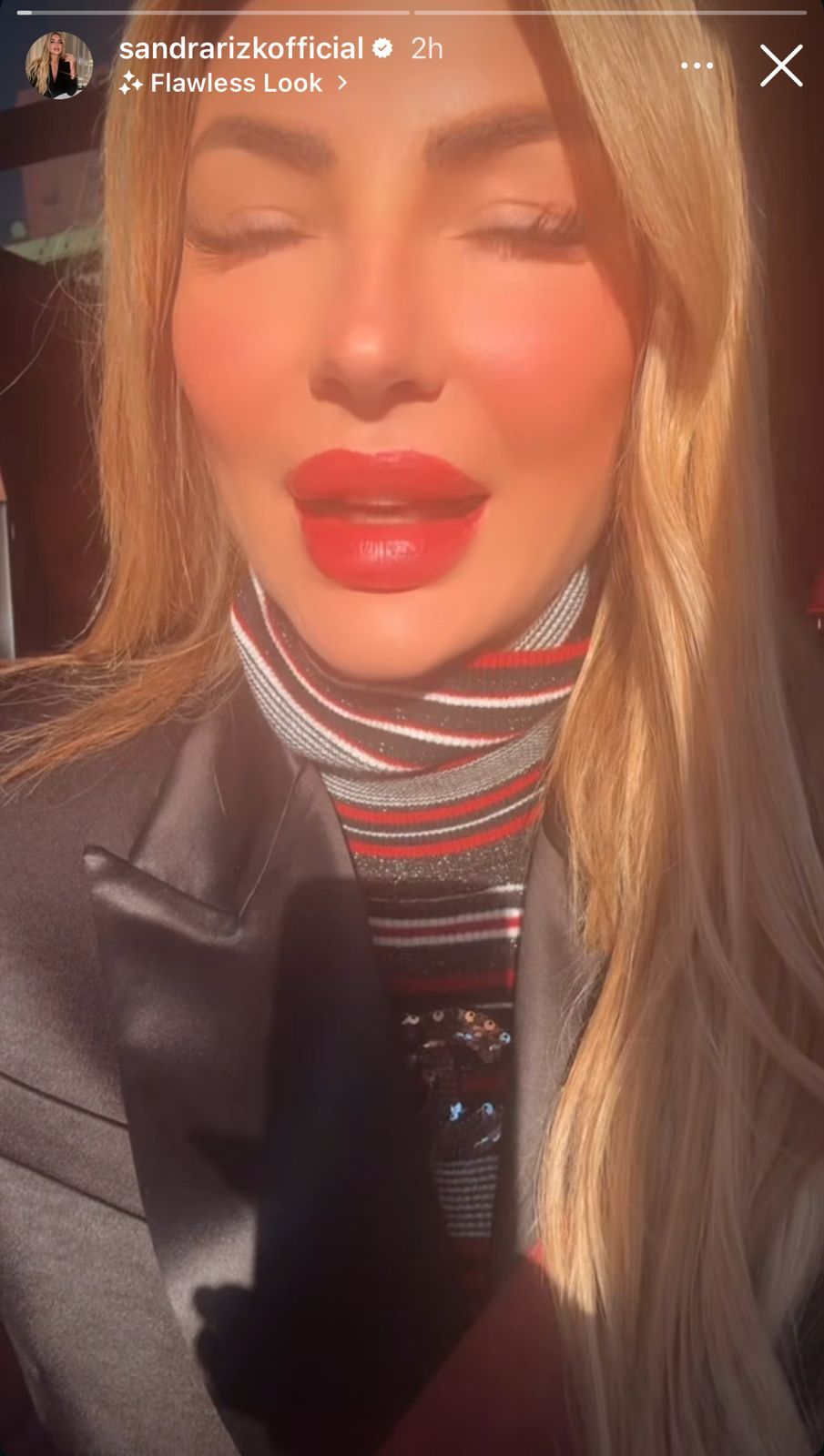 ظهرت ملكة جمال لبنان السابقة ساندرا رزق بـلوك جريء وأنيق جمع بين المكياج القوي والستايل العصري.