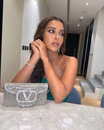 وظهرت بلقيس وهي ترتدي “جامبسوت” باللون الأخضر الفاتح، ونسقت معه حذاء صيفي باللون الفضي، حقيبة يد مميزة باللون الفضي أيضاً، من دار “فالنتينو” للأزياء ويصل سعرها إلى 3700 دولار أميركي.