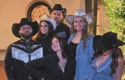 ووصل الثنائي إلى الحفل برفقة عدد من الأصدقاء بسيارة ليموزين، حيث ارتدى الحضور أزياءً مستوحاة من الطابع الغربي، ما أضفى أجواء احتفالية مميزة على المناسبة.