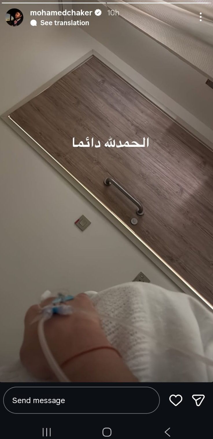 أقلق الفنان محمد شاكر نجل الفنان فضل شاكر، متابعيه، بعدما نشر صورة له عبر خاصية "ستوري" عبر حسابه على "انستغرام"، وهو في المستشفى.