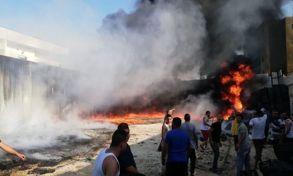 وعلم أنه يجري العمل على إخماد النيران، فيما لم يتم الابلاغ عن إصابات بشرية حتى الساعة والأضرار مادّية.