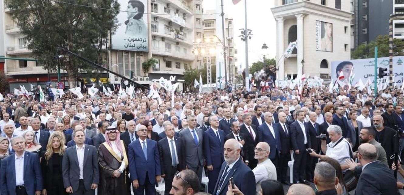 أمّا من ناحيّة "المعارضة"، فقد وجّهت رسالتها الأولى إلى "حزب الله" من خلال التقارب القويّ بين "الكتائب" و"القوّات" الذي تمثّل بحضور نيابيّ قواتيّ وازن في إحتفال الأشرفيّة، بالإضافة إلى تواجد وجوه من قوى "التغيير" ونواب مستقلّين من السنّة. وكانت مشاركة السفير السعوديّ وليد البخاري لافتة، وقد رأى فيها مراقبون أنّ السعوديّة تؤيد وصول رئيسٍ شبيه ببشير الجميّل، ويحمل صفاته.