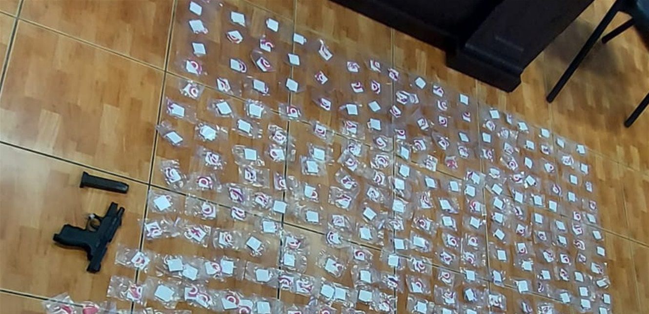 1,3 كلغ من مادّة الكوكايين معدّة للترويج داخل 570 مظروفاً، 14 مظروفاً تحتوي مادّة باز كوكايين زنتها 29,4غ، كمية من مادّتي الماريجوانا وحشيشة الكيف، ماكينة و"دفتر لف سجائر"، مسدّس حربي، ومبلغ مالي عبارة عن 100 دولار أميركي و6,516,000 ل. ل.