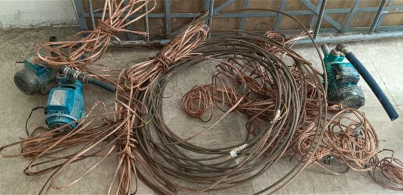 وضبطت بحوزته كميّة من الأسلاك الكهربائية ومضخات مياه مسروقة، وذلك أثناء بيعها في بؤرة للخردة لصاحبها: