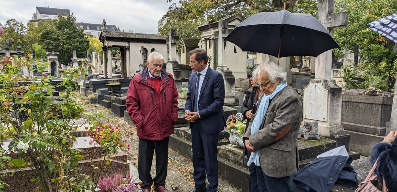 كرّم سفير لبنان في فرنسا رامي عدوان، صباح اليوم الكاتب والشاعر باللغة الفرنسية، اللبناني جورج شحادة في مدافن مونبارناس في باريس، يرافقه الشاعر أدونيس والأستاذ جان كلود موران.