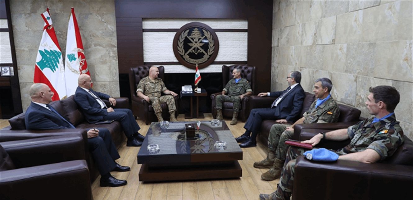استقبل قائد الجيش العماد جوزاف عون في مكتبه في اليرزة، قائد قوة الأمم المتحدة الموقتة في لبنان اللواء ارولدو لازاروا على رأس وفد مرافق، وتناول البحث علاقات التعاون بين قوات اليونيفيل والجيش اللبناني.