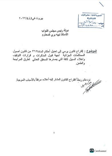 قدم النائب جورج عطالله باسم "كتل لبنان القوي" اقتراح قانون يرمي إلى تعديل أحكام المادة 362 من قانون أصول المحاكمات الجزائية لجهة قبول المذكرات وقرارات التوقيف وإخلاء السبيل كافة، التي يصدرها المحقق العدلي لطرق المراجعة والطعن.