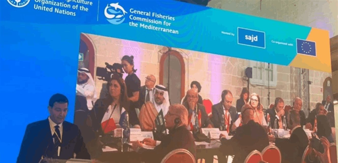 وتحدث عن "أمور أساسية والأبرز من بينها"، وقال: "نتطلع إلى مزيد من التعاون والتنسيق والدعم، من الهيئة العامة لمصايد الأسماك في البحر المتوسط، في قطاع الاستزراع والصيد البحري في وطني".