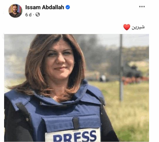 وقبل ايام، استذكر عصام عبر حسابه على "فيسبوك" الشهيدة الصحافية شيرين ابو عاقلة، فنشر صورتها ووضع قلبا امامه. ولم يكن يعلم اننا اليوم سنضع قلوبا له.