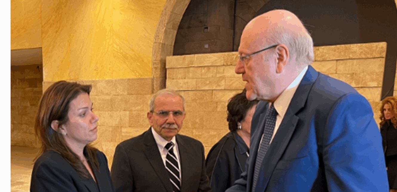 قدم رئيس الحكومة نجيب ميقاتي التعازي بالاعلامية الراحلة جيزيل خوري في كاتدرائية مار جرجس المارونية في وسط بيروت.