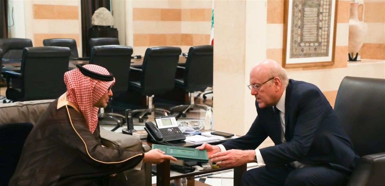 وكان رئيس الحكومة سفير المملكة العربية السعودية في لبنان وعرض معه العلاقات الثنائية بين البلدين واهمية العمل لابعاد لبنان عن توترات المنطقة.