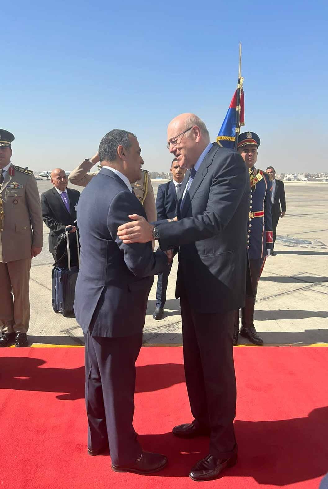 وصل رئيس الحكومة نجيب ميقاتي الى مصر للقاء الرئيس عبد الفتاح السيسي وكان في استقباله في مطار القاهرة وزير الإنتاج الحربى محمد صلاح الدين.