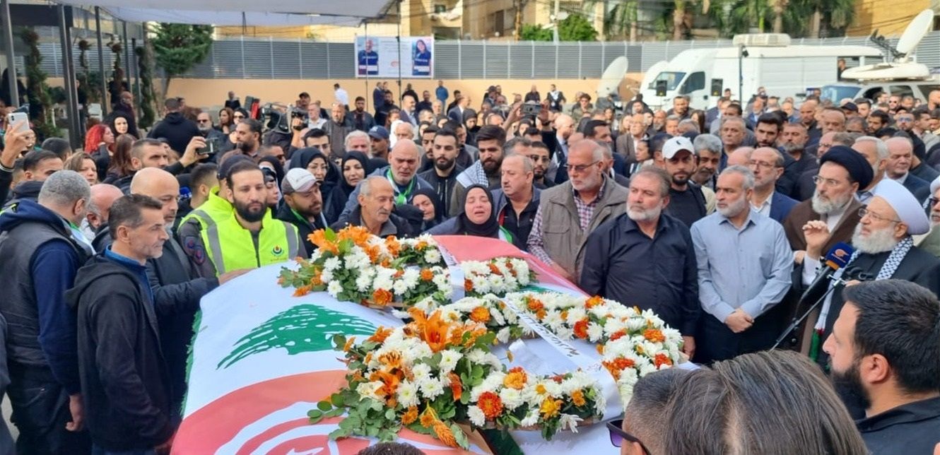 بدأت قبل قليل مراسم تشييع الشهيدين فرح عمر وربيع معماري في قناة "الميادين" - بيروت.