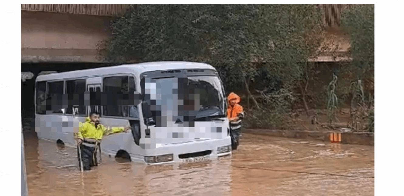 وقد حرص العناصر على التأكد من سلامة التلاميذ الصغار وسحب الباص الى مكان آمن.