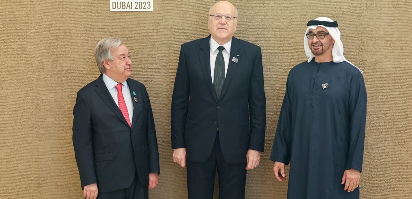 حكومياً، كان للرئيس نجيب ميقاتي لقاء عمل مع امير دولة قطر الشيخ تميم بن حمد آل ثاني، تناول العلاقات الثنائية والدور القطري في المساعدة على انماء الشغور الرئاسي، فضلاً عن جدول اعمال قمة تغير المناخ "كوب 28" الذي بدأ اعماله في امارة دبي في الامارات العربية المتحدة، بحضور نظيره القطري الشيخ محمد بن عبد الرحمن بن جاسم آل ثاني.