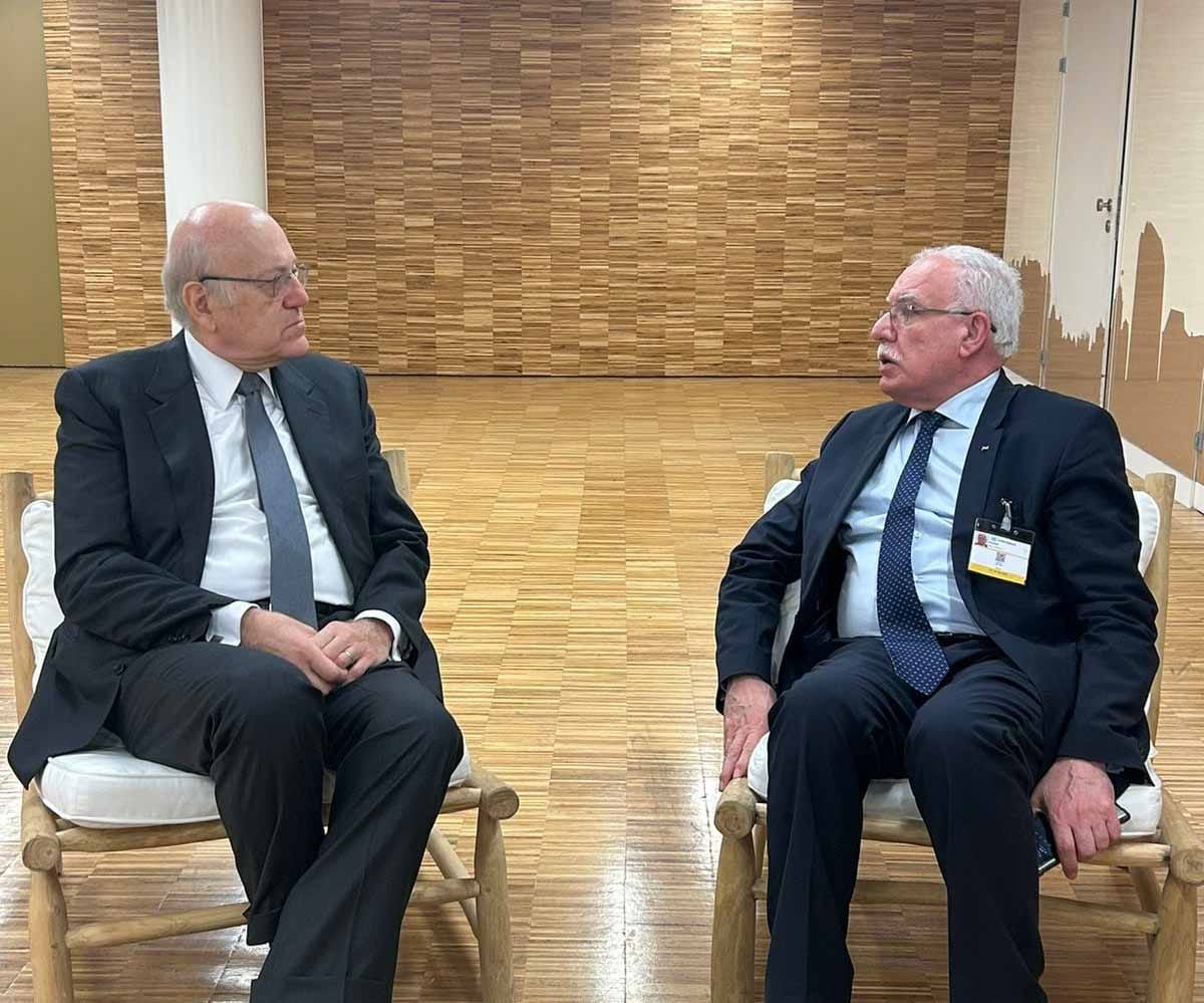 إجتمع رئيس الحكومة نجيب ميقاتي مع وزير خارجية فلسطين رياض المالكي، خلال مشاركتهما في المنتدى العالمي للاجئين المنعقد في مدينة جنيف في سويسرا.