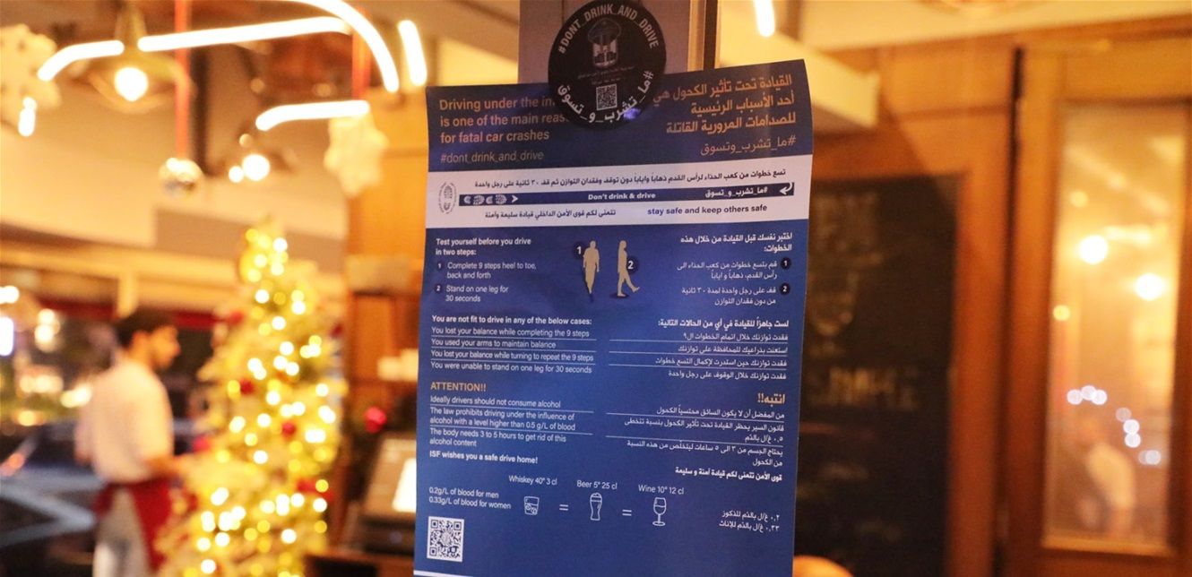 ولفتت بيان وزعته المديرية العامة لقوى الأمن الداخلي، إلى أن "عناصر قوى الأمن وزعت coasters, posters A3, stickers على المطاعم والحانات وأماكن السهر ومطويات على الطرق. وتضمنت هذه المنشورات QR Code يحتوي على معلومات تهدف إلى رفع الثقافة المروريّة لدى السائقين، حول مخاطر القيادة تحت تأثير الكحول، وتضمن اختبارا عمليا للكحول مطبقا من قبل الشرطة في عدد من دول العالم، كالولايات المتحدة الأميركية وغيرها، واعتمدته قوى الأمن على سبيل التوعية ومن أجل أن يختبر السائقون قدرتهم على القيادة أو بطلب من الركاب، لأنه يجب عليهم أن يتمتعوا دائما بكامل التركيز والوعي لحماية أنفسهم والآخرين".
