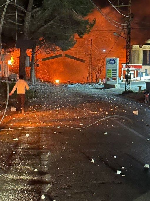 استهدف الطيران الحربي للعدو الإسرائيلي، مساء اليوم، سلسلة من المحالات التجارية على الطريق العام الرابط بين بلدتي كفرا و صديقين.