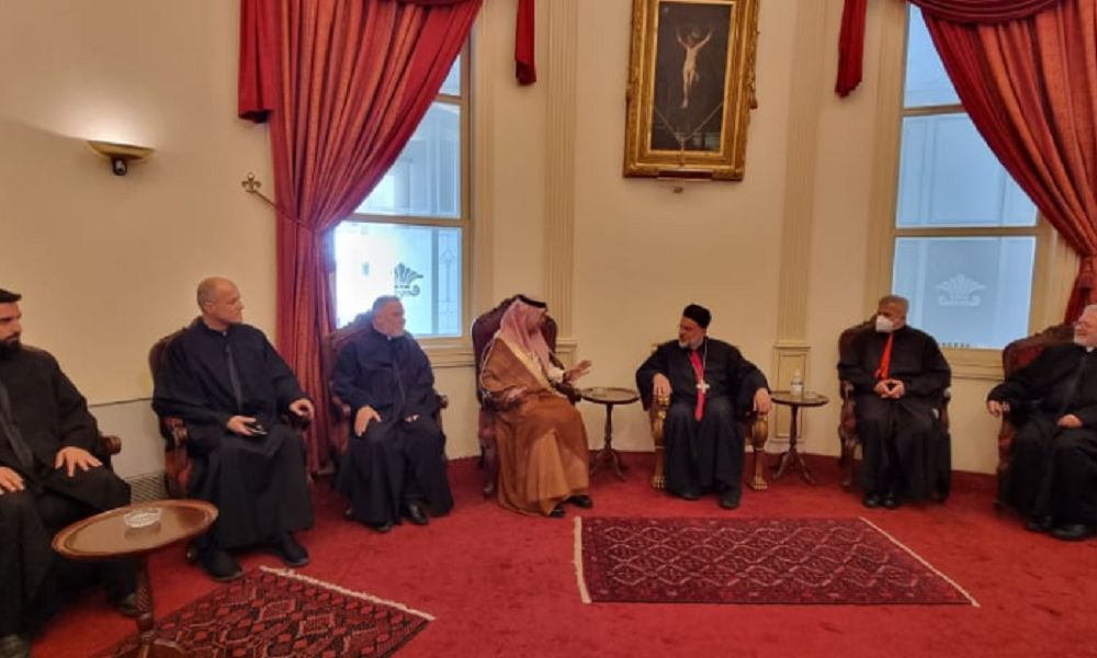 وزار السفير السعودي رئيس أساقفة أبرشية طرابلس المارونية المطران يوسف سويف، في دار المطرانية في طرابلس. وشكلت الزيارة مناسبة لتبادل التهاني بعيد الفصح وشهر رمضان.