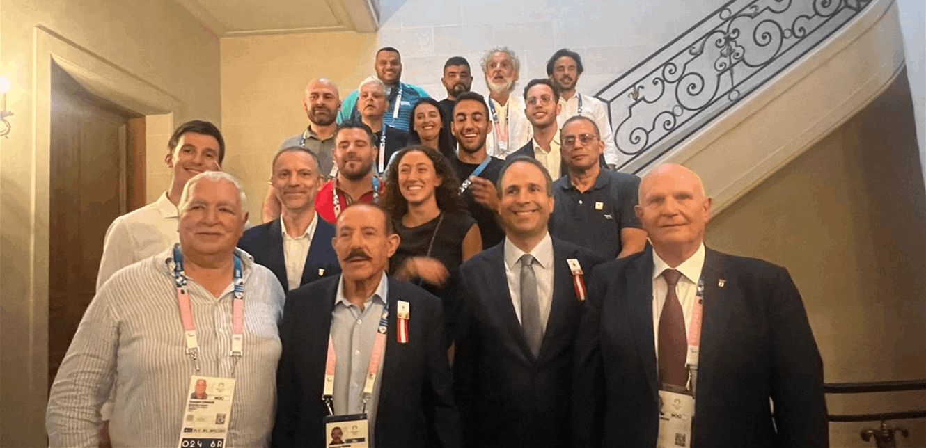 وحضر رئيس اللجنة الأولمبية بيار جلخ والأمين العام جودت شاكر ورئيس البعثة المحامي فرنسوا سعادة وعدد كبير من أبناء الجالية اللبنانية في فرنسا.