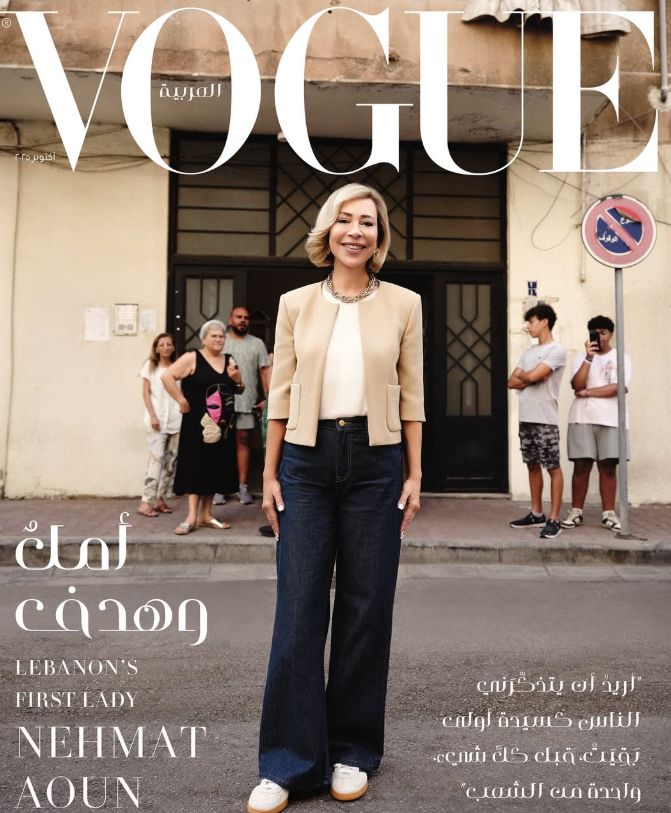 حلّت اللبنانية الأولى السيدة نعمت عون ضيفة على غلاف مجلة Vogue العربية، لهذا الشهر، وأجرت حوارًا مطوّلًا مع رئيس التحرير مانويل أرنو، تحدثت فيه عن العائلة والوطن، وعن وقوفها كمتحدثة أمام الجمعية العامة للأمم المتحدة.