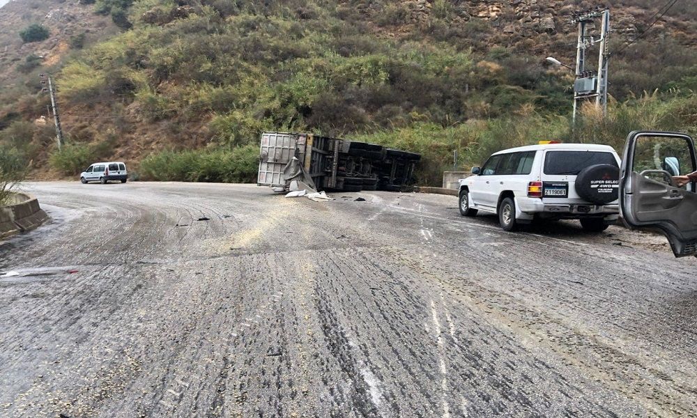 تسبّبت الرياح القوية بانقلاب شاحنة على الطريق العامة في بلدة عيتيت – قضاء صور، ما أدّى إلى أضرار مادية من دون تسجيل إصابات، إذ نجا السائق بأعجوبة.