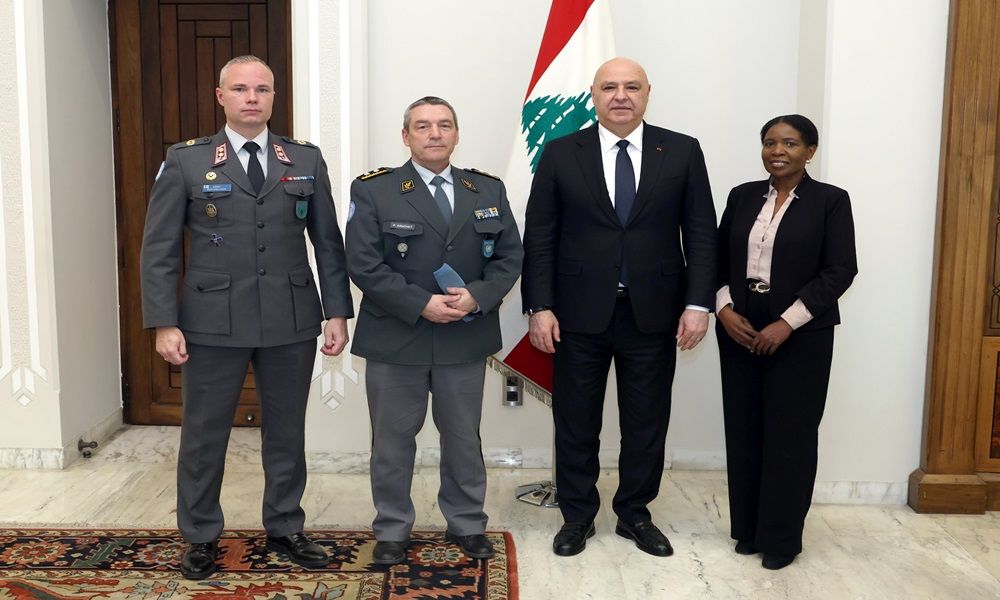 استقبل رئيس الجمهورية العماد جوزاف عون، رئيس هيئة مراقبي الهدنة الدوليين في الشرق الأوسط UNTSO Maj Gen Patrick Gauchat والمستشارة السياسية للهيئة السيدة Maria Kantamigu والمسؤول في مكتب بيروتCol. Henri Ruotsalainen، وذلك في زيارة وداعية لمناسبة انتهاء مهمة الجنرال Gauchat في لبنان وانتقاله إلى مركز آخر.