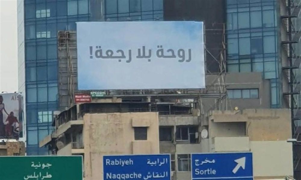 لوحظ ارتفاع لوحة إعلانيّة على اوتوستراد انطلياس، على المسلك المؤدي نحو كسروان، كُتب عليها “روحة بلا رجعة”، الأمر الذي حمل تفسيرات سياسيّة، خصوصاً أنّ هذه اللوحة تأتي قبل أقلّ من ثلاثة أشهر على نهاية العهد.